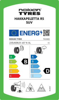 Nokian Tyres Hakkapeliitta R5 SUV on henkilöautoihin, crossovereihin ja katumaastureihin tarkoitettu kitkarengas. Erityisesti tehokkaiden ja suurten ajoneuvojen tarpeisiin suunniteltu Hakkapeliitta R5 SUV varmistaa optimoidun vakauden, lujuuden ja kulutuskestävyyden sekä hallitsee samalla suuria pyöräkuormia tarkasti ja luotettavasti. Ainutlaatuiset Arctic Grip Crystals -kiteet takaavat rengasluokan parhaan suorituskyvyn jäällä. Aramid vahvistetut -sivupinnat parantavat kestävyyttä ja pistosuojausta.