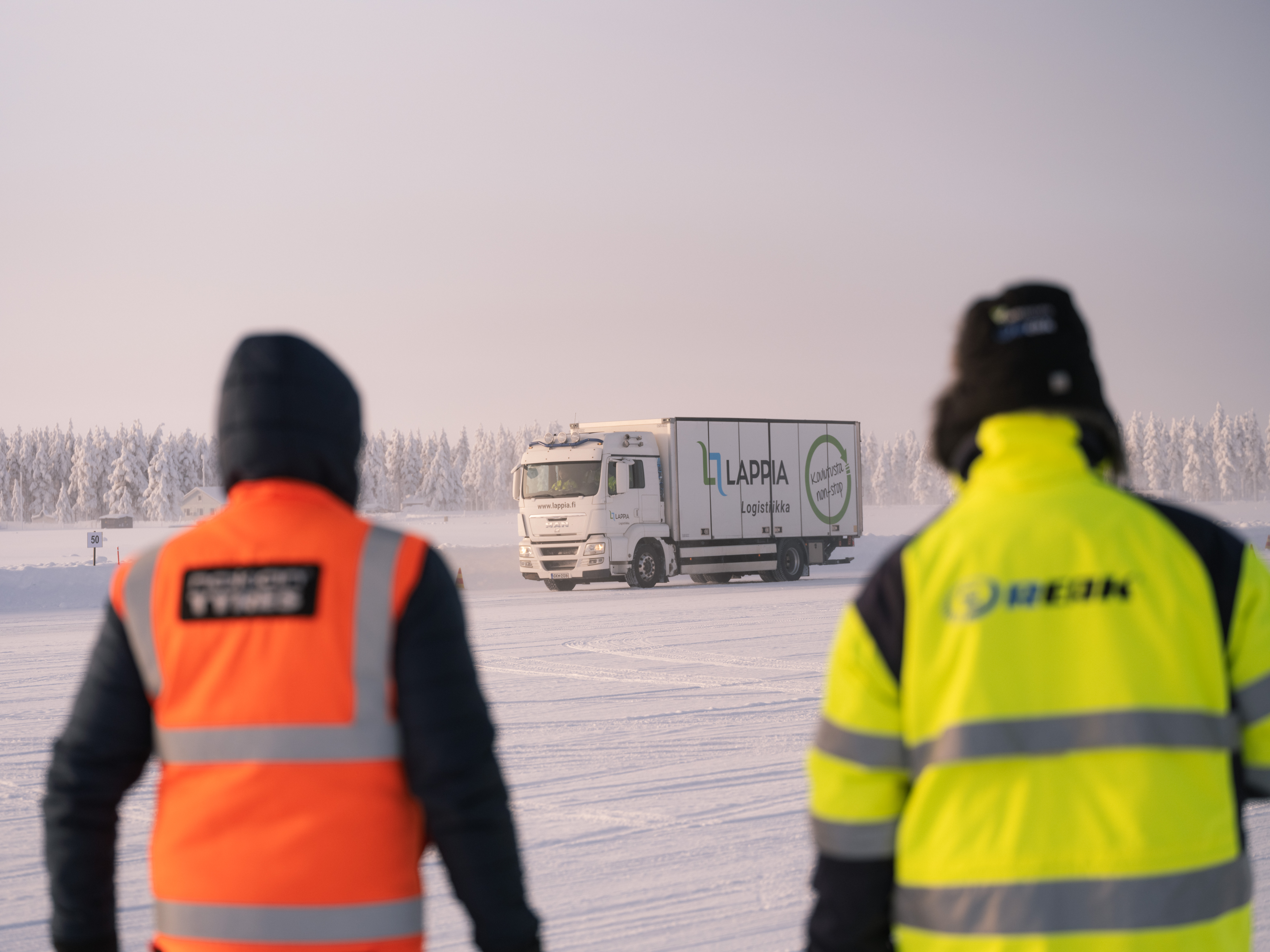 Nokian Raskaat Renkaat mukana kehittämässä talviliikenteen turvallisuutta – jarrutusmatkoja testattiin Pudasjärvellä