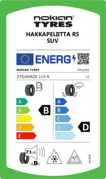 Nokian Tyres Hakkapeliitta R5 SUV on henkilöautoihin, crossovereihin ja katumaastureihin tarkoitettu kitkarengas. Erityisesti tehokkaiden ja suurten ajoneuvojen tarpeisiin suunniteltu Hakkapeliitta R5 SUV varmistaa optimoidun vakauden, lujuuden ja kulutuskestävyyden sekä hallitsee samalla suuria pyöräkuormia tarkasti ja luotettavasti. Ainutlaatuiset Arctic Grip Crystals -kiteet takaavat rengasluokan parhaan suorituskyvyn jäällä. Aramid vahvistetut -sivupinnat parantavat kestävyyttä ja pistosuojausta.